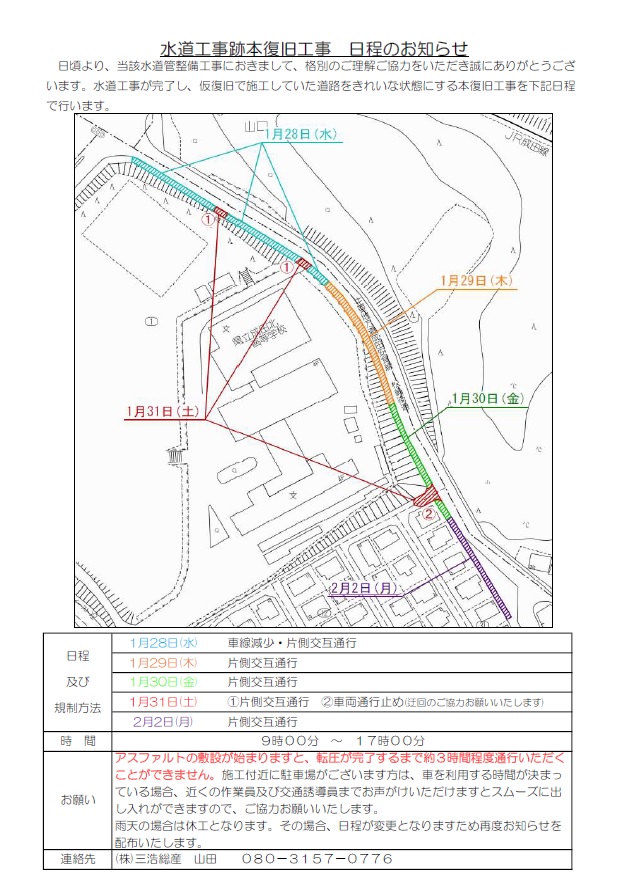 - 舗装工事の日程が下図の通り決定しましたのでお知らせいたします。